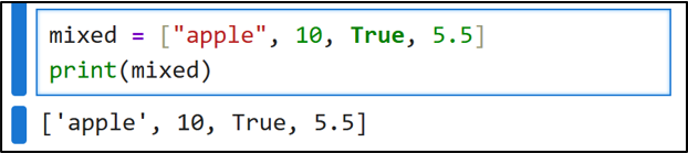 A list can contain different data types together like numbers, strings, booleans, etc.