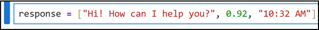 b) In a chatbot-based application, you can store a variety of data into a single list like user response, confidence score, and timestamp.