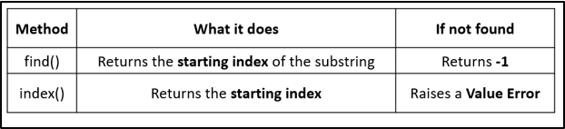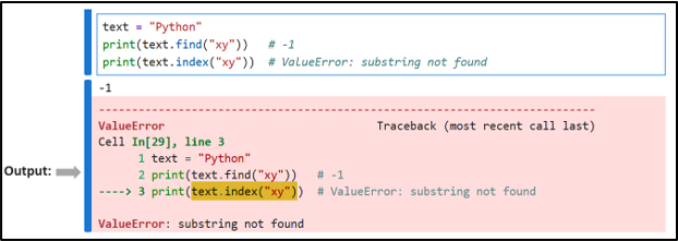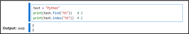 b) Search feature: Suppose you are building an IDE and you want to have a “find in text” feature, then the find() method can help you search for words without crashing your program.