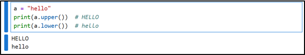 3. Case Conversion (upper(), lower()):These two methods are used to convert letters to upper or lower case.