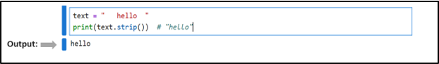 6. strip():It is used to remove leading and trailing spaces or whitespaces from a string.