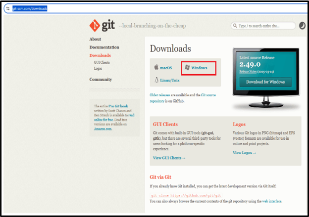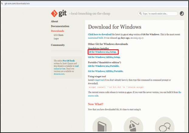 3. Click on link ‘Git for Windows/x64 Setup’: