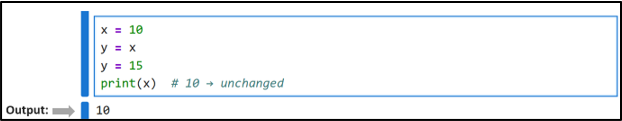 Here, you can see that changing y value does not affect x because numbers are immutable.